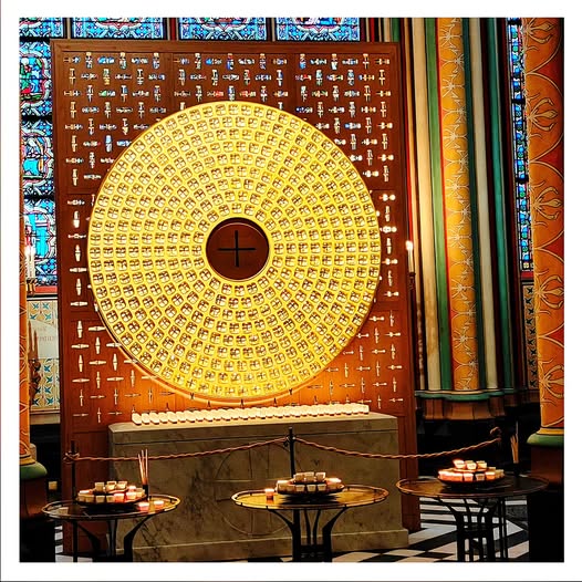 Depuis trois jours, pensant à la soirée géométrie du Cercle potache, j'ai tendance à voir des carrés, des triangles, des ronds partout... D'où mon plaisir et ma surprise à découvrir l'étonnant reliquaire de Notre-Dame contenant la couronne d'épines, qui s'est bientôt soulevée pour déambuler dans la cathédrale comme chaque premier vendredi du mois. Les formes géométriques ne sont pas mortes ! Un futur convive me confiait qu'il n'aimait pas les cercles, symboles d'éternel retour, parce qu'il fuit sa jeunesse comme la peste. J'y vois plutôt l'éternité... Nous en reparlerons demain !